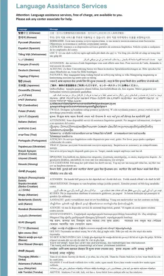 Click here for a full-size version of the Language Assistance Service document.