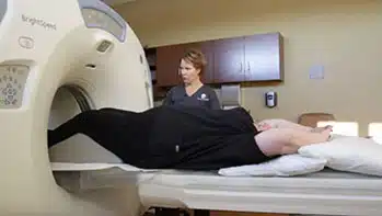 During your lung cancer screening, you will be placed on the scanner table. The technologist will then leave the room to run the scanner from a computer located behind the viewing window. The technologist will communicate with you throughout the exam. The CT table you are on will move into the scanner and the technologist will take the images.